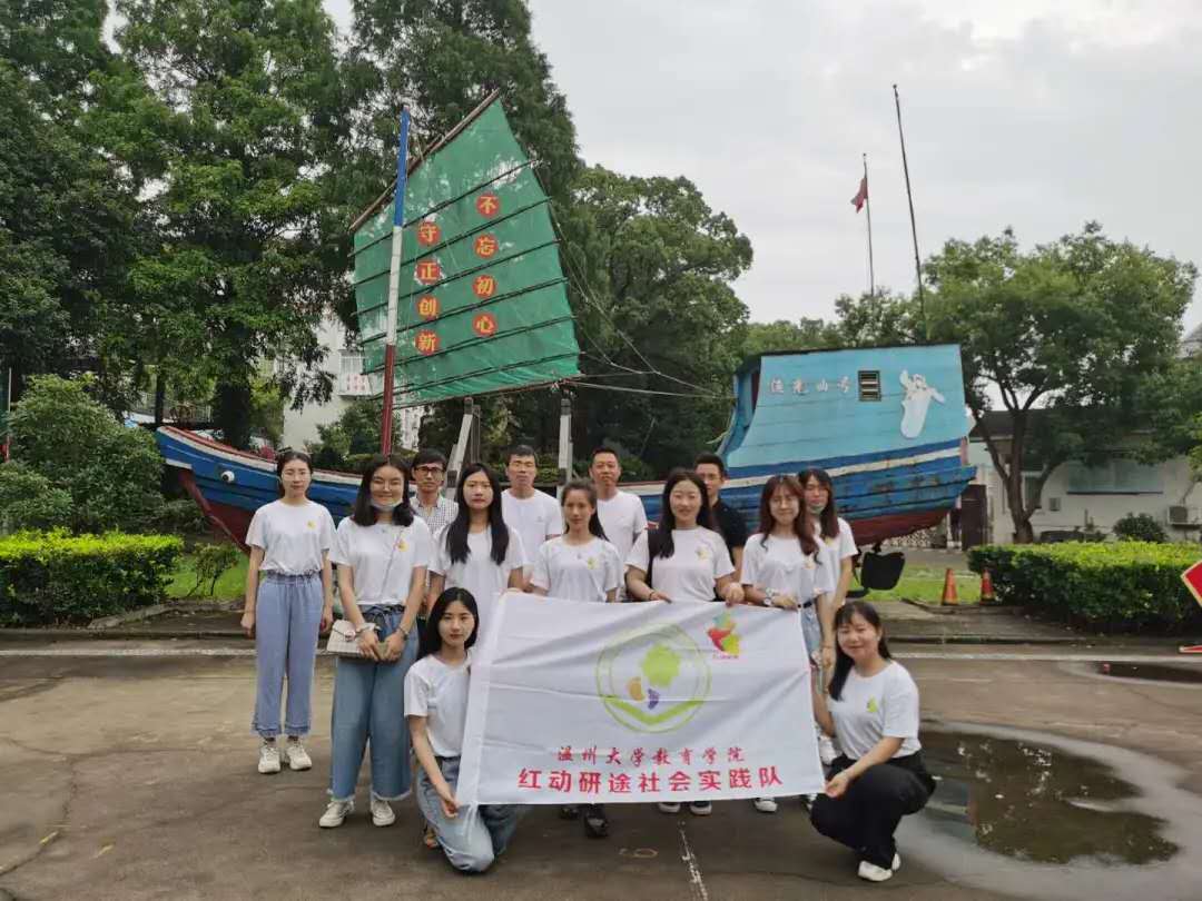 大海,给予人们的不仅仅是海产和海味,更是给予“傍海而居”的人以艺术的灵感。象山,作为一颗镶嵌在东海之滨的渔文化之“珠”,置身于烟潮中,聆听号子声声。2020年7月5日上午,在浙江省中小学生研学旅行研究与指导中心副主任邓纯考副教授、91吃瓜 教育系主任折延东教授、海影城研学负责人牟敏杰和渔文化体验基地邵胜忠校长的带领下,91吃瓜 红动温途实践队的渔文化之旅从“全国首创海洋渔文化体验基地”正式开启。
