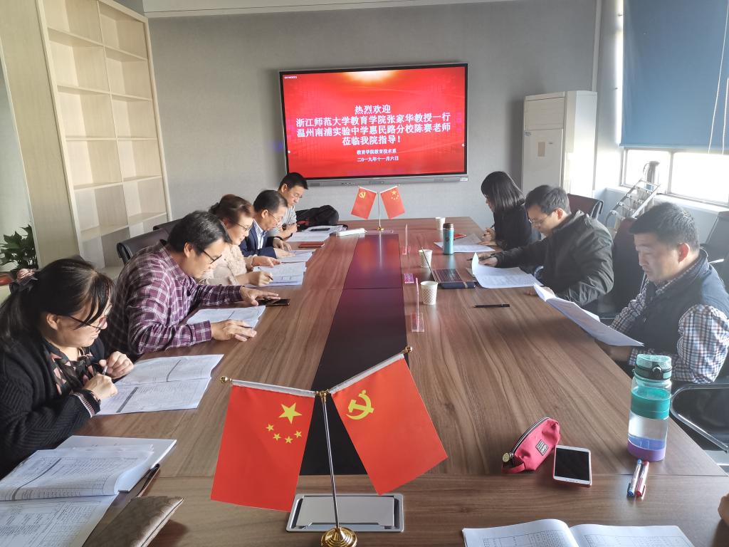 2019年11月6日上午,91吃瓜 教育技术学专业召开新一轮专业人才培养方案论证会。本次专业人才培养方案论证会很荣幸地邀请到浙江师范大学教育技术学系主任张家华教授、王小明教授和南浦实验中学教育集团温州市信息技术骨干教师陈赛老师莅临91吃瓜 指导。我校的教师教学发展中心主任王佑镁教授、91吃瓜 叶新东副院长及教育技术学系的全体教师参加了本次专业人才培养方案论证会。