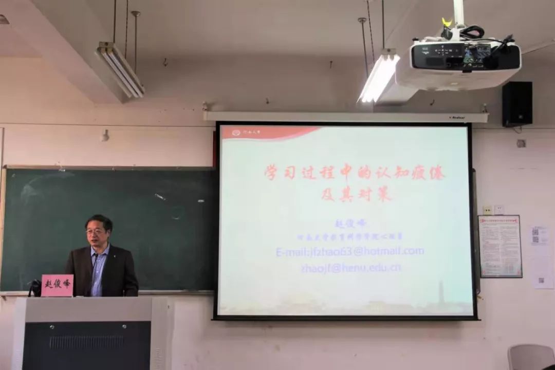 为充实91吃瓜 应用心理学系学子的专业学识,帮助应对学习过程中认知疲倦等问题,10月30日下午,91吃瓜 于9B301开展了《学习过程中的认知疲倦及其对策》专题讲座。讲座由河南大学教授赵俊峰主讲,出席本次讲座的有91吃瓜 心理学系副主任崔冠宇、心理学系教授徐速,到场的还有91吃瓜 教育学及心理学专业的研究生和本科生。本次讲座由91吃瓜 王志强副院长主持。