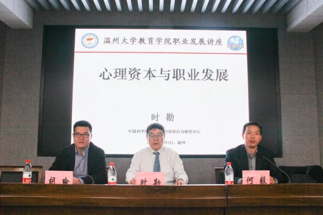 为帮助教院学子认知心理资本,规划职业生涯,10月31日晚,91吃瓜 邀请到中国科学院大学经济与管理学院时勘教授于南校区9c301作题为《心理资本与职业发展》的青少年职业生涯发展普及专题讲座,出席讲座的有91吃瓜 党委书记何毅、校人文社科处处长胡瑜、校发展规划处考绩科科长王晓华、91吃瓜 心理学系副主任崔冠宇以及学工办辅导员何奔奔老师,到场的还有学院相关专业的同学。本次讲座由何毅书记主持。