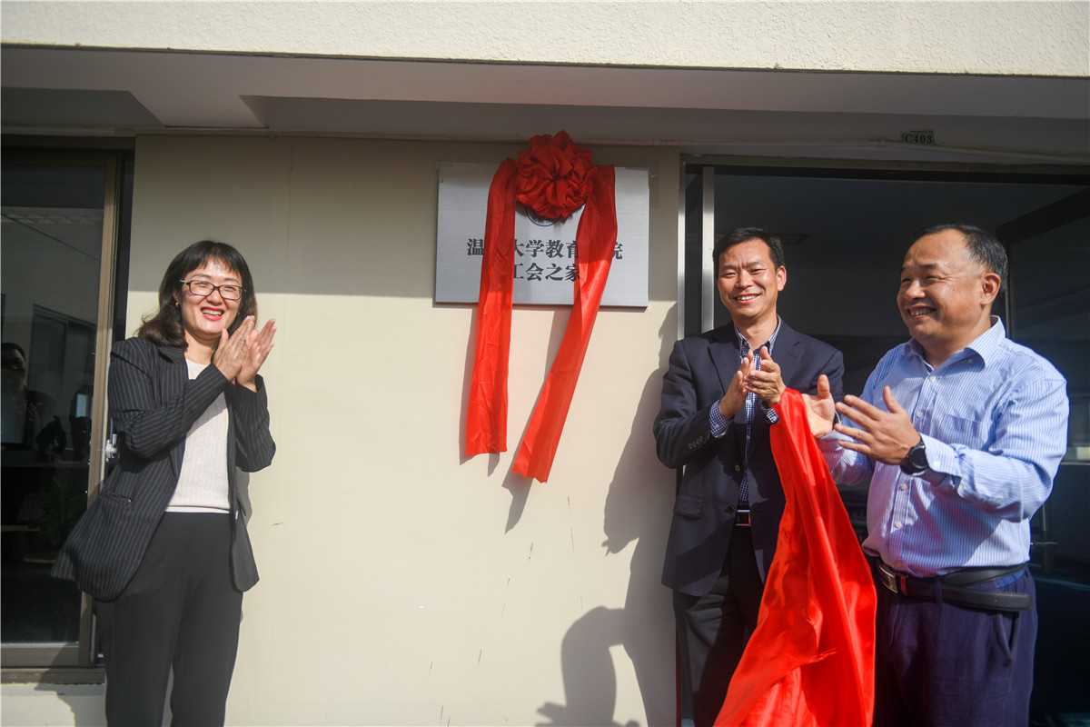 在教院全体教师愉悦的掌声中,张希均主席、孙芙蓉院长、何毅书记共同为工会之家揭牌。仪式告一段落后,教院工会还特地举办了简单而温馨的冷餐会,让老师们在忙碌的工作之余感受一份来自学院大集体的温暖关怀和融融情谊。