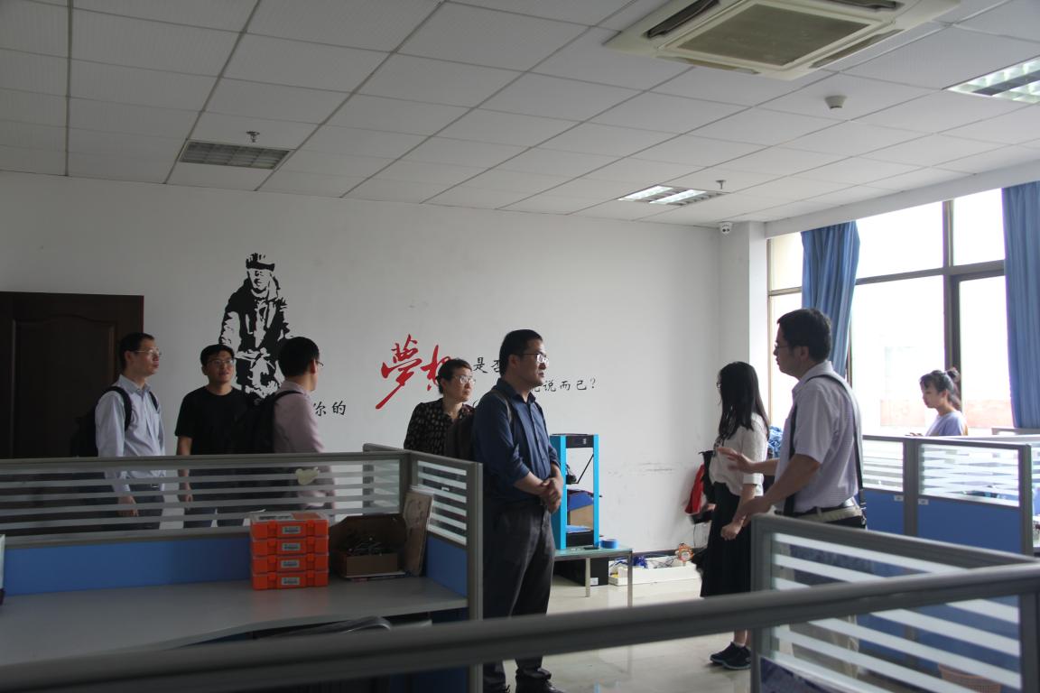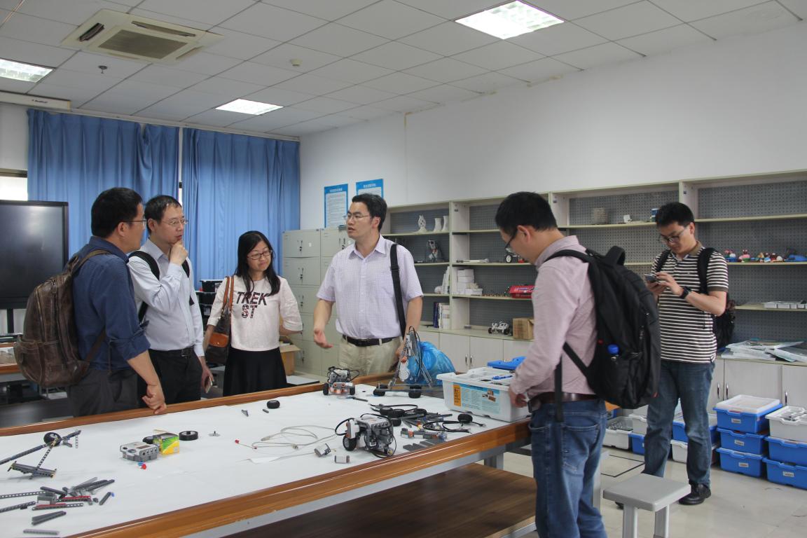 王永固副院长一行主要参观了虚拟实验室、学生工作坊实验室、教育机器人实验室、温大创客空间等实验室,他们对实验中心良好的实验教学环境、先进的仪器设备、丰硕的教研成果予以很高的评价,同时,双方就师范类实训实验室的建设情况进行了深度交流与探讨。