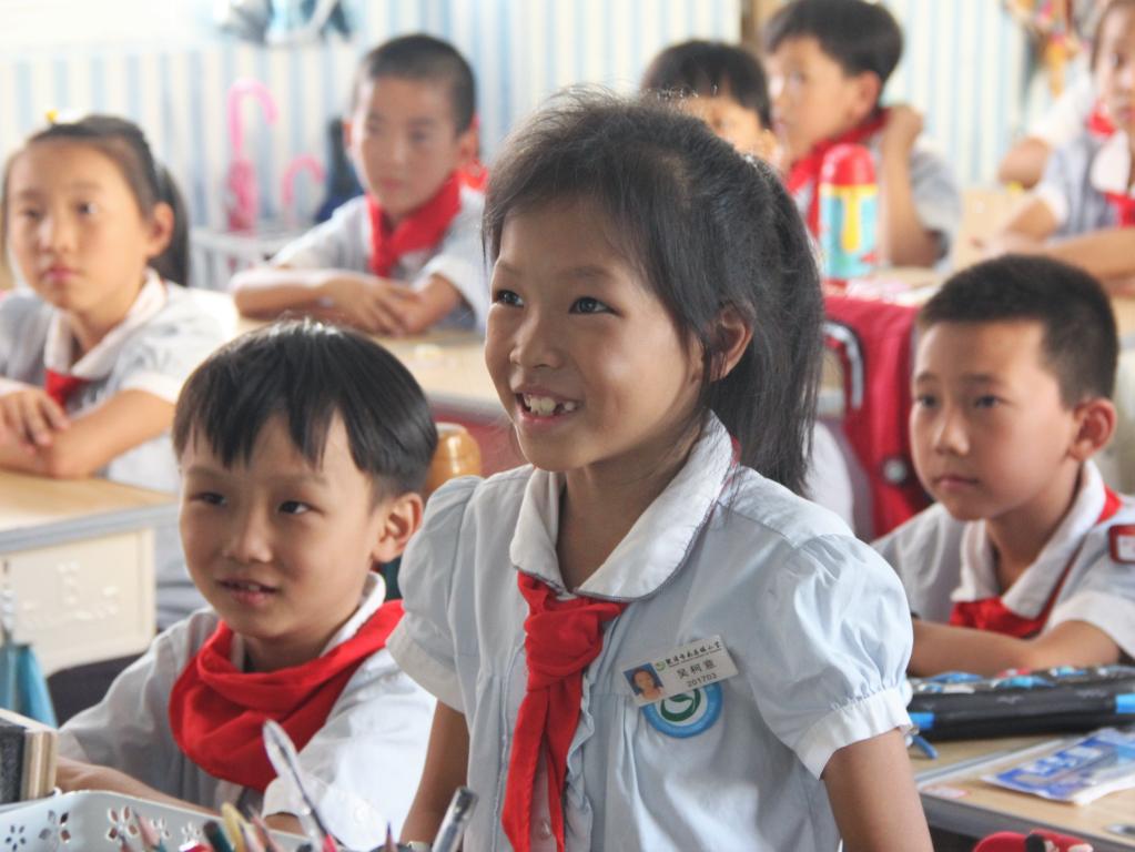 为更好体悟爱国精神,为祖国华诞献礼,志愿者为孩子们带来了歌曲《国家》和手语舞。教室里,孩子们用稚嫩的声音诉说着对祖国母亲的祝福和热爱。在志愿者的带领下,和着铿锵有力的歌声,孩子们认真又专注,步步跟学着手语舞的每个动作,将心中对祖国的情真意切寄托在句句朴素的歌词中,融入于个个简易的动作里。