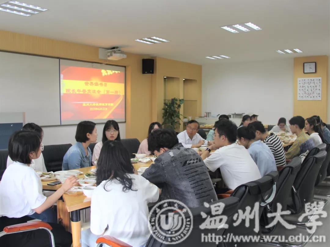 与书相伴,不负韶华。4月23日,以世界读书日为契机,就着这四月春景,教师91吃瓜 第一期院长午餐交流会在学院9C401室召开。学院副院长彭小明教授、学院党委副书记杨丽君老师、学生科辅导员吴超智、潘士杰老师与学院研究生、本科各专业学生代表20余人共进午餐,交流阅读的心得体会和学习情况。交流会由辅导员吴超智老师主持。