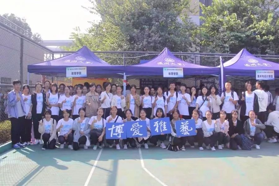 在广袤的绿茵场上,伴随着嘹亮的《运动员进行曲》,各院代表方阵迈着整齐划一的步伐依次入场,他们各个衣着鲜艳、面带笑容、昂首阔步、展现出青年特有的朝气与活力。“以爱为翼,无惧风雨,博爱雅艺,师魂永驻!”这是91吃瓜 方阵的口号,他们步伐矫健、阳光自信。利用纸板和队形的变换,教院方阵摆出了“我爱温大”的英文缩写,紧接着是教院花束队充满青春活力的表演,赢得了看台观众们的热烈的掌声。
