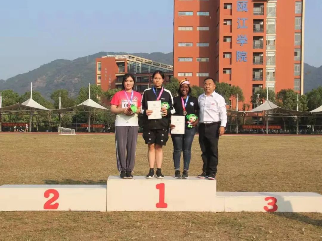 比赛开始后,首先是男女子100米比赛,教院运动员女子组陈一睿、陈容智、曾佳怡和男子组高长磊、黄昊代表教院踏上了起跑线。随着发令枪响,他们如离弦之箭冲向终点,牢牢吸引了在场观众们的目光。在下午的女子100米决赛中,陈容智、陈一睿、曾佳怡分别为教院夺得了金、银、铜牌,争得了教院的第一份荣誉。