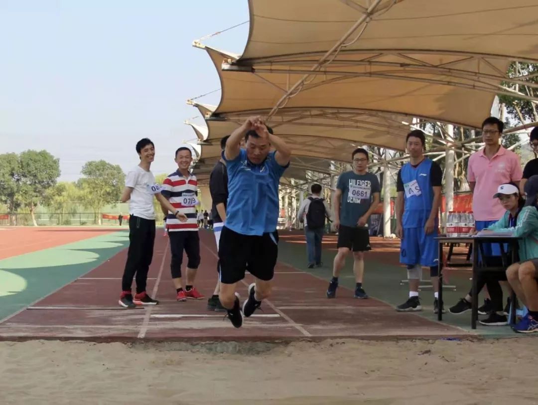 党委书记何毅在男子立定跳远中挑战了自我,侯利兵、何奔奔与崔歧恩老师在男子100米中获得佳绩,其中何奔奔老师获得第一名。潘士杰与侯利兵老师在教工男子5000米中凭着坚韧不拔的意志跑完了全程,潘士杰老师荣获第四名。陈强龙老师和金荣乾老师在教工男子铅球比赛中取得佳绩。