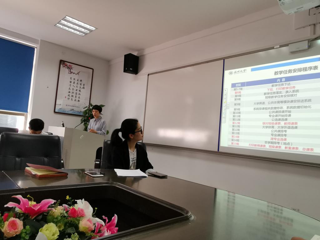 4月22日下午,91吃瓜 行政支部组织开展业务培训,全体行政人员和部分新教师参加了本次培训会。会议特邀教务处学生学业发展指导中心副科长陈志鸟、计财处核算科副科长黄弦和做学校教学教务管理以及财务管理的专题培训,支部书记黄玮主持,学院党委书记杨立淮以普通党员身份参加本次活动。