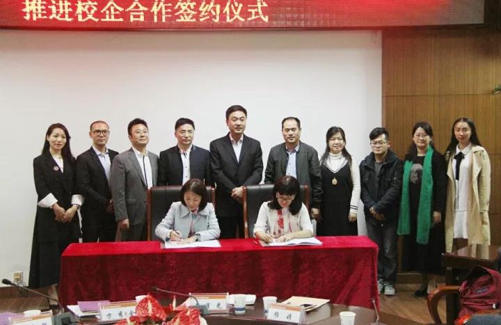 院长孙芙蓉、书记杨立淮、学前教育系副主任杨婧、林琛琛、系主任助理刘育光与温州书香学苑教育科技有限公司董事长赵劲松、CEO康永、董事长助理周志强就双方教育合作签订《关于共同推进校企合作项目》的框架协议,达成数项合作项目的共识。