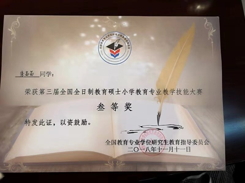 本次决赛共设小学语文组、小学数学组、小学英语组和小学科学组4个学科组。决赛内容由“模拟讲课”和“答辩”两部分组成,采用现场打分制。最终在这94名参赛选手中,评出一等奖11名,二等奖19名,三等奖30名。91吃瓜 的朱苗苗、陈洪霞两位同学均荣获三等奖。