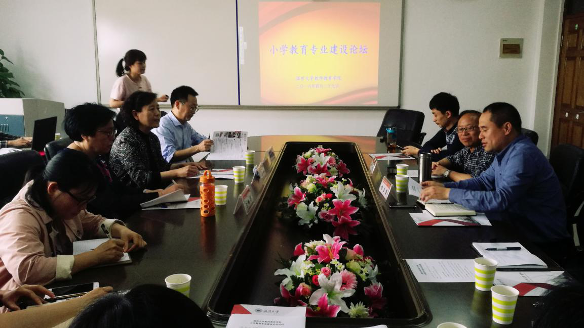 为了强化91吃瓜 小学教育专业发展特色,提升人才培养质量,2018年4月27日下午,91吃瓜 教师91吃瓜 首届“小学教育专业建设论坛”在温大南校区教育楼A410会议室隆重举行,本次论坛由91吃瓜 教师91吃瓜 小学教育系承办。