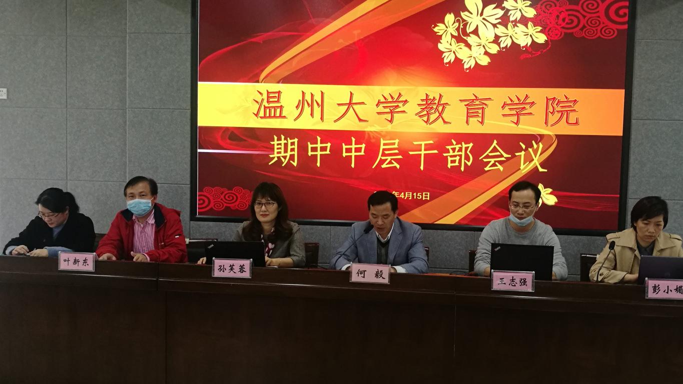 叶新东副院长布置了本科毕业论文工作和国家省一流专业申报工作,要求各系按时、高质开展。同时,他通报了4月份线上教学工作,强调网络教学纪律,要求线上教学做到有始有终。王志强副院长部署了2020年研究生招生复试工作,今年研究生招生指标大幅提高,要多渠道全方位吸引优质生源,并要求全院教职工严格遵守法律政策和招生纪律,廉洁自律。林琛琛副院长就线上教学的主要举措和初步成效做了通报,并部署了云实习工作。根据调研数据,学院线上教学教师与学生满意度高,尤其是得到了学生的高度认可。彭小媚副书记回顾了教院疫情期间的工作,对教院好声音等战“疫”行动给予肯定。她布置了开展“小金库”专项检查以及毕业生就业状况调查、考研复试、招生宣传等方面工作。