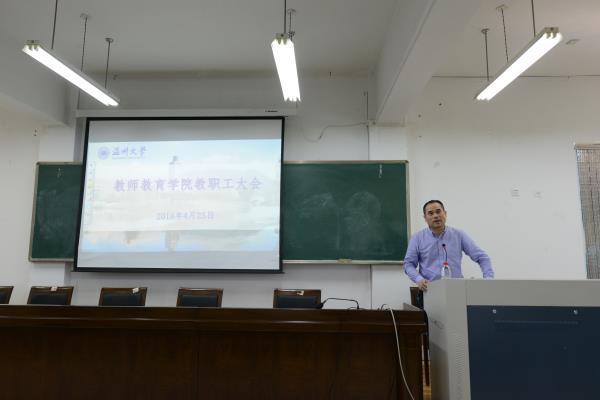 4月25日下午,91吃瓜 在南校区9C301召开全体教职工大会,学院全体教职工及部分研究生党员参加,杨立淮书记主持。本次会议议程主要包括新教师入职仪式、学院2018年全面从严治党工作会议暨“党支部建设年”工作部署会以及师德师风专题学习。