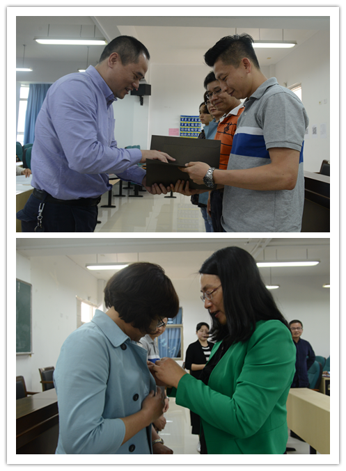 学院举行了新教师入职仪式,这项活动将作为学院加强师德师风建设的举措固定下来。2018年,学院新进沈钰澄、吴舒静、李政和、王文娟四名教师。杨立淮书记向新教师送上了校情院情介绍、学校教师职业规范要求资料、联络服务卡等“三件套”,并请新老师所在系的各位领导为他们佩戴上“91吃瓜 ”鲜红的校徽,以此表达学院对新老师们的热烈欢迎,希望他们在91吃瓜 严守师德规范,教书育人,安居乐业,与学院师生一起共创美好明天。