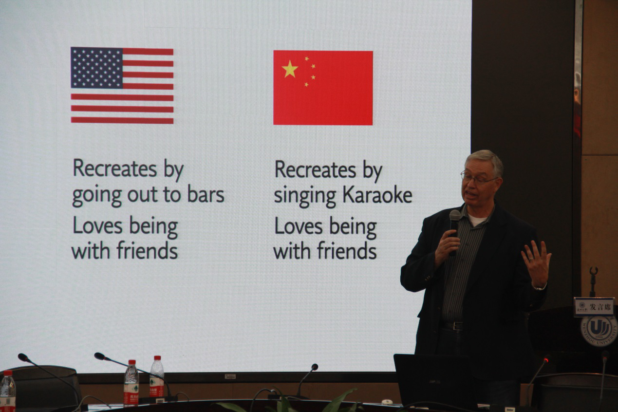 在顺应学校发展趋势中,围绕教育观念国际化、人才培养目标国际化和合作交流国际化等方面进行了教育国际化的有益探索,吸收和借鉴国外教育的先进理念和成功经验,提升学校教育现代化水平和国际交流合作领域,为培养和造就具有国际视野、具有先进理念的国际化师范人才而努力。 学习科学领域主要关注“人为什么要学习”、“人是如何学习的”以及“人应该如何学习才更有效”等三大核心基础性问题展开研究,而且,世界各国已将学习科学确立为新教育政策的关键基础,其成果深刻影响了国际教育变革的步伐和走向。从学习科学出发,研究教与学的关系,已成为世界诸多发达国家探索教育创新、革新课堂教学的新路径选择。本次论坛以“学习科学与教学”为主题,旨在通过学习科学的研究成果推动教学发展,使教育工作者更好的理解学与教的内在逻辑关系。来自肯恩大学Randy L. Clark教授以幽默风趣的开场白揭开了本次论坛的序曲,他主要从视觉可视化图形教学出发,在中国与美国学生在设计图形过程产生的思维差异作为教学研究的切入点,重点改善与优化中国学生可视化图形设计的思维,并认为图形化设计过程就是为了简洁、明了地传递信息,也是为了更加深入地加工信息,是对语言、文字等思维活动的解释说明。 Randy L. Clark教授学术演讲 来自韩国全南大学的Shin. BoMi教授,则主要从数学教育为介绍的出发点,重点探讨了韩国在数学教学、教师知识以及数学电子课本开发等方向的问题。同时,也谈到了全南大学文化特点、中韩两国教育文化的发展,尤其是全南大学与中91吃瓜