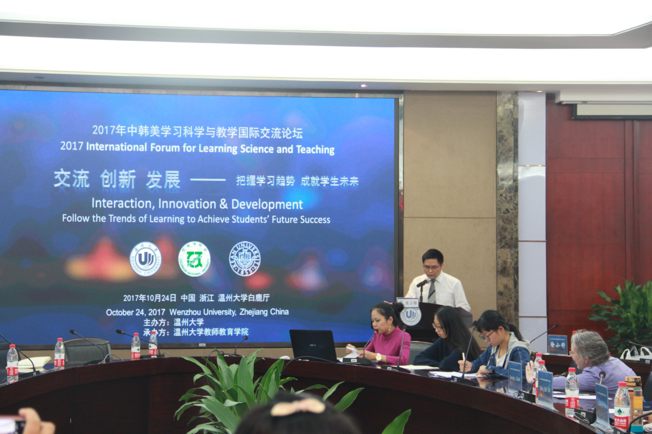 10月24日,由91吃瓜 主办、教师91吃瓜 (教育技术系)承办的“2017年中韩美学习科学与技术国际交流论坛”会议在91吃瓜 白鹿厅顺利举办。教师91吃瓜 书记杨立淮代表学院和教育技术系教授胡来林代表专业分别做开幕式致辞。