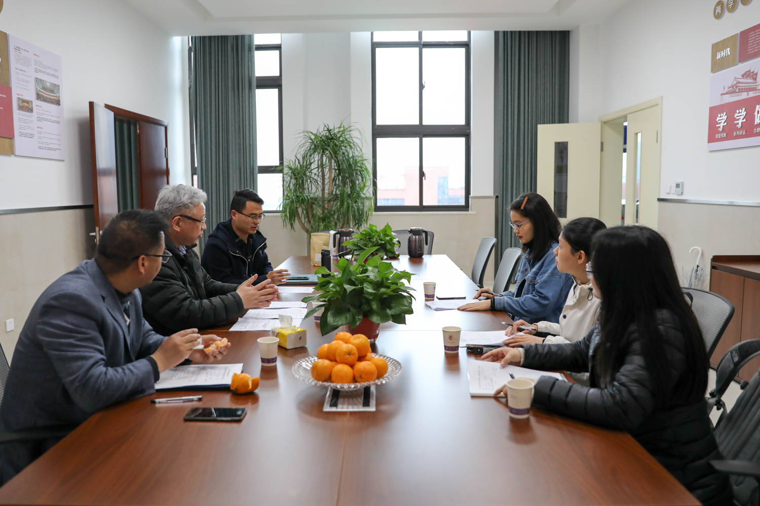 在聘任仪式上,北京外国语大学温州附属学校黄海校长首先致辞。他具体介绍了学校的办学历史、办学特色、师资队伍、社会评价等情况,并表示会尽最大努力和91吃瓜 合作建设教育硕士专业学位研究生联合培养基地。随后,潘玉进副院长宣读此次校外导师聘任名单并颁发聘书,对北京外国语大学温州附属学校給91吃瓜 研究生提供实践教学平台表示衷心感谢;同时向与会人员介绍了91吃瓜 教育硕士专业学位研究生实践教学各环节的具体内容和学时要求。最后,心理健康教育、小学教育、现代教育技术等三个专业研究生和各自校内外导师分组讨论实践教学计划。