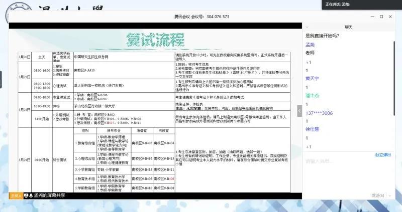 疫情非常时期,为帮助学子调整心态、认清形势、明确要点、积极应试,3月11日晚,91吃瓜 召开线上考研复试经验分享交流会。91吃瓜 党委副书记彭小媚,学工办辅导员潘士杰老师参与本次交流会。会议由潘士杰老师主持。学院19级心理健康教育方向在读研究生孟尧、15级小学教育毕业生,现云南民族大学19级课程与教学论方向研究生黄天宇带来了干货满满的研究生复试与调剂经验分享。