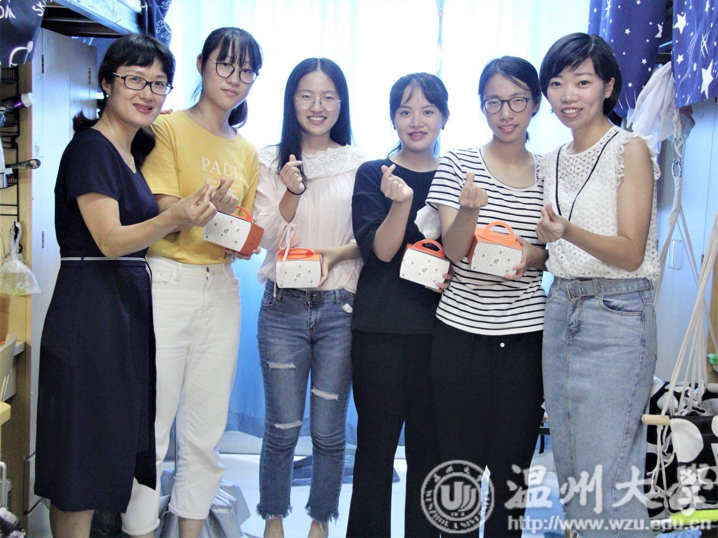 孙芙蓉院长将月饼亲自送到同学的手中并亲切问候了同学们。“中秋节你们都回家吗?”“回家的同学路上一定要注意安全。”“最近在学业或者生活方面有什么问题吗?”孙院长一声声亲切的问候,不仅体现了浓浓师生情,也温暖了同学们的心。杨立淮书记带着教院为同学们精心准备的月饼,前往寝室,为教院学子送去中秋祝福。书记依次询问了同学们来自哪里以及是否适应大学生活等问题。他提到,军训虽然辛苦,但也是大学阶段最珍贵的回忆。杨丽君副书记在了解了研究生同学的的近况后,还特别留意到有些同学们并未及时吃午饭,她细心地叮嘱同学们,三餐一定要及时吃,无论如何,身体才是革命的本钱,有了健康的体魄,大家才能更努力地学习奋斗。叶新东副院长除了为同学们带去了中秋节前夕最真挚的祝福外,还特意询问了同学们的假期安排。虽然有些同学因为路程原因不能回家,但是一个个小小的月饼却将师生的心紧紧联系在一起,让同学们感受到了家的温馨。杨刚主任亲切地询问着同学们的生活近况和学习情况,并为他们送上节日祝福。他亲和的笑容和温馨的言语,让每个人都感受到了身为教院人的幸福。
