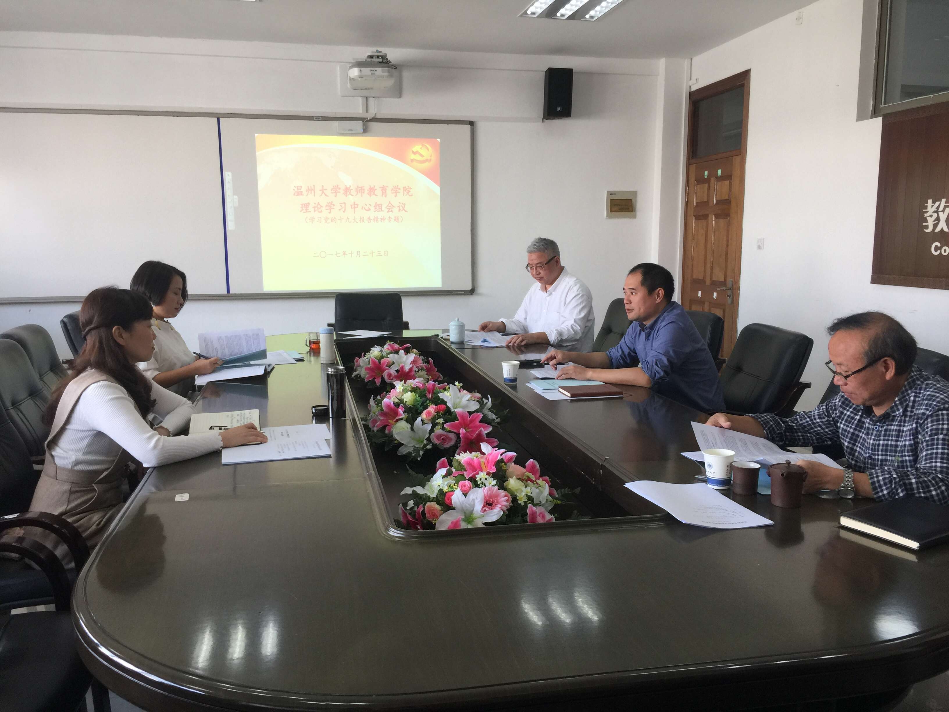在南校区9A410会议室召开理论学习中心组会议,学院领导班子、党总支委员参加,会议由杨立淮书记主持。