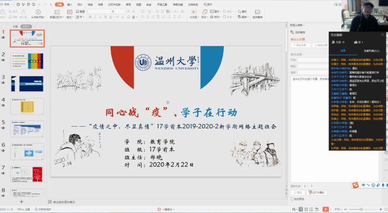 班主任就目前的疫情状况对我们进行了思想研判工作,强调相关纪律要求,展开心理健康教育工作以及资助工作。