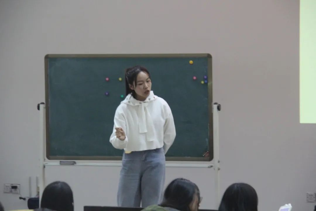 林芬老师让五位同学上台抽取题目,现场进行准备和模拟讲课。对同学们的表现,她也提出了指导意见。她首先指出“要通过各种唱歌形式,让孩子巩固歌曲”。在歌唱教学中应当由老师范唱,让幼儿拍手配合老师钢琴伴奏熟悉旋律,引导幼儿慢慢学习。紧接着,林芬老师提出开场要“开门见山”,中间的内容要强调重点,态度要亲和、投入,在摆放教具的时候要按从左到右的顺序,这样有助于幼儿的记忆。另外,在课堂互动方面要站在幼儿的视角里和幼儿沟通,活动结尾一定要有延伸和拓展。最后,面试礼仪在应聘时至关重要。进门时要敲门,要向评委老师介绍自己讲课幼儿的年龄段,结束时要说结束语,鞠躬。讲座结尾,林芬老师还全面地解答了同学们的疑问,分享了自己的经验。比如在准备舞蹈时动作要有流动性、情境性、空间性,在讲述故事时,一定要了解好故事情节,做到详略得当。