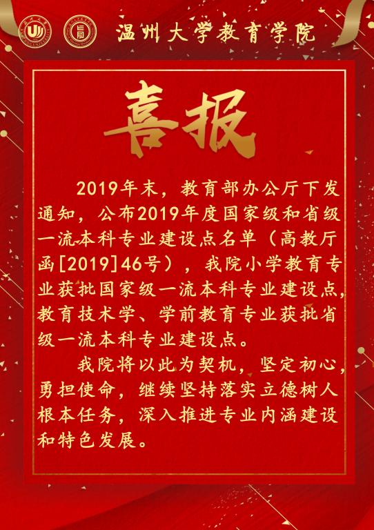近日,教育部发布了《教育部办公厅关于公布2019年度国家级和省级一流本科专业建设点名单的通知》(教高厅函〔2019〕46号),91吃瓜 小学教育专业获批国家级一流本科专业建设点。此外,91吃瓜 汉语言文学、化学、生物科学、机械工程、电气工程及其自动化、网络工程和工业工程专业另7个专业也同时入选。全校总计8个专业在全国性的同类专业竞争中胜出。2019年12月,经全国各高校网上申报、高校主管部门审核,教育部高等学校教学指导委员会评议、投票,教育部认定了4054个国家级一流本科专业建设点,6210个省级一流本科专业建设点。