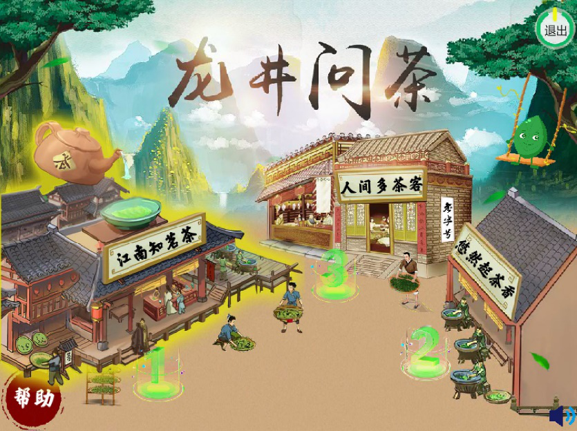 作者用CINEMA 4D软件搭建了3d西湖茶馆场景,让学生能身临其境的体验,在和茶客的对话中,体悟龙井的内涵精神和其引申的人生态度;在以茶会友模块,以三维的视角,体悟龙井的茶风茶俗,提升学生的情感价值态度观,弘扬龙井乡土文化。