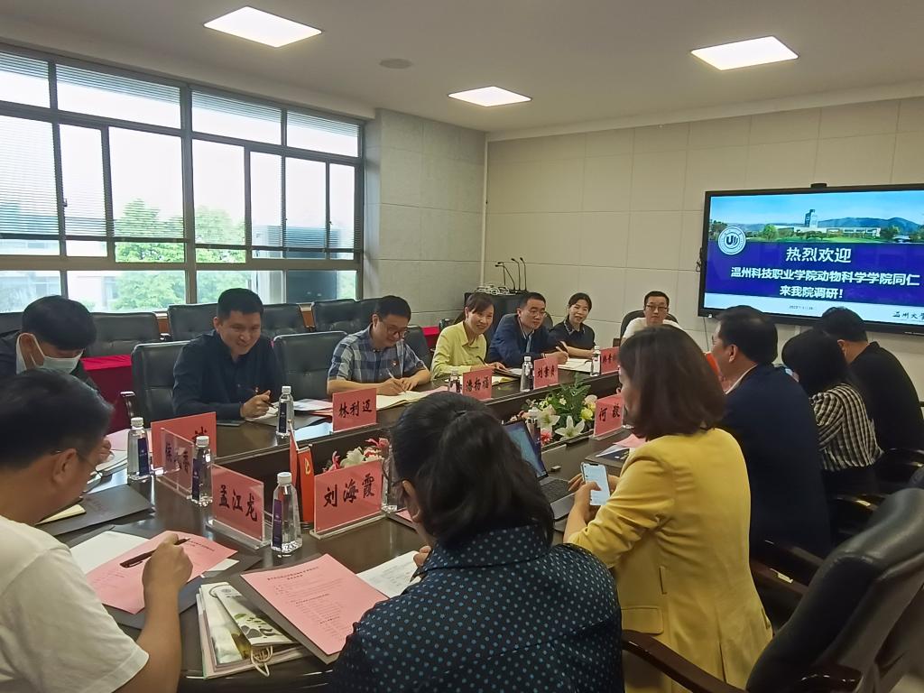 5月26日上午,温州科技职业学院动物科学学院潘杨福院长、刘素贞执行院长一行8人来91吃瓜 调研全国党建标杆院系创建情况。学院党委书记何毅、副书记彭小媚、副书记章园园、小教系书记刘海霞、党建办工作人员等参加了调研交流会。