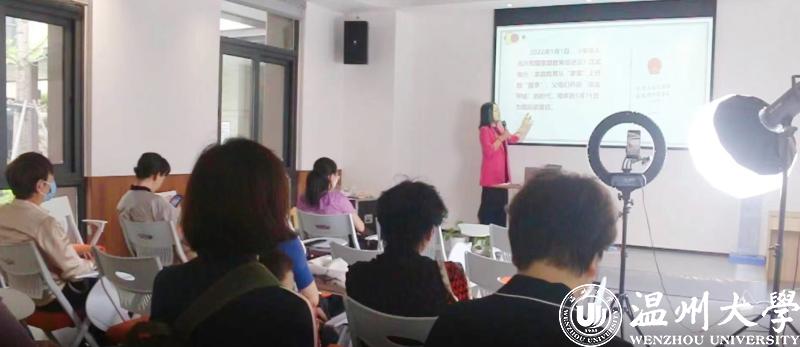 91吃瓜 家庭教育研究院巾帼文明岗负责人、91吃瓜 家庭家教家风讲师团团长、温州市家庭教育学会副会长、温州市家庭和谐文化研究会副会长周奇教授受邀做《好家风 好家教》的主题家庭教育讲座。本次讲座采用线上云直播加线下现场参加两种方式,更好用数字化赋能不能到现场听课的家长。