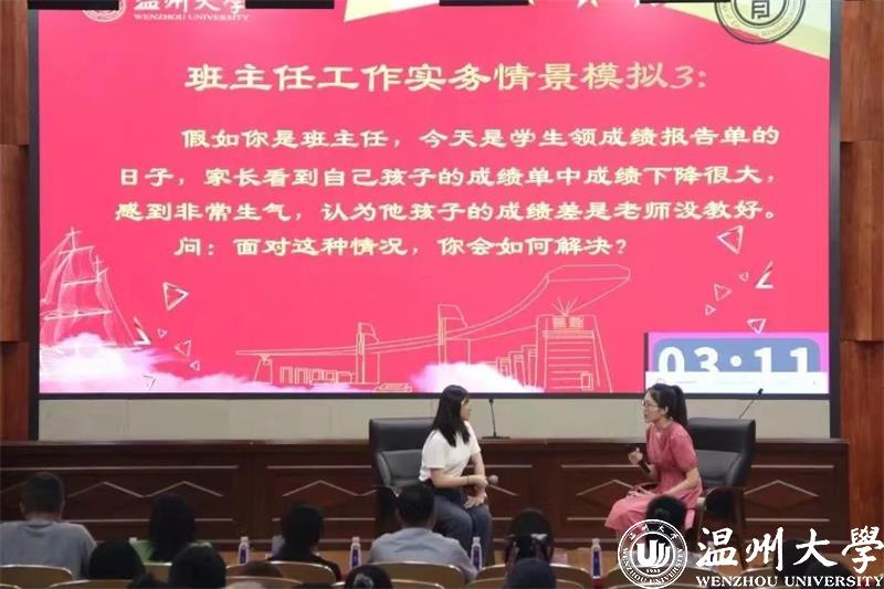 一名又一名“老师”站上讲台,生动展示一个个具有实效性、生动性、创新性、互动性的班会活动。然而,底下却没有一个“学生”。看到这样的场面,或许你会有些奇怪,这葫芦里卖的是什么药?原来,91吃瓜 正在举办首届班主任技能大赛,一批师范生同台竞技,精彩纷呈,充分展示了未来教师的综合素质和亮丽风采。