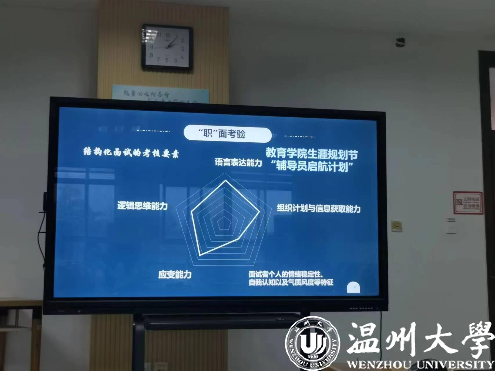 本次“未来辅导员启航计划”主要从辅导员岗位认知、理论知识、面试技巧以及模拟考试实践训练等方面依次开展。在了解辅导员这一岗位的入门环节,91吃瓜 辅导员李金伟围绕“‘职’引灯塔——如何成为一名辅导员”这一主题,讲述了自己从温大研究生到上岸成为一名温大辅导员的亲身经历。他还为同学们详细介绍了辅导员工作的具体内容。当天到场的许多学生并非应届毕业生,他们纷纷表示,李老师的讲座让自己在迷茫的研一阶段就明晰职业规划。“我更清楚地知道了辅导员这个岗位是否适合我,而不是盲目随波逐流。”