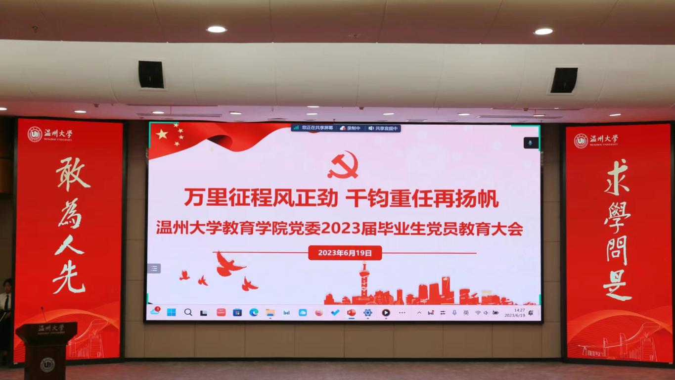 “在校园时,各位党员是同学们的表率;出校园时,大家是社会的中坚力量。在未来,希望各位毕业生不因‘空山不见人’而乱心智,不因花言巧语而迷方向,成为具有‘广博’师识、‘爱惠’师德、‘雅懿’师表和‘笃艺’师能的新时代教师……” 6月19日下午,一堂主题为“万里征程风正劲 千钧重任再扬帆”的党课在91吃瓜 的校园里开展。