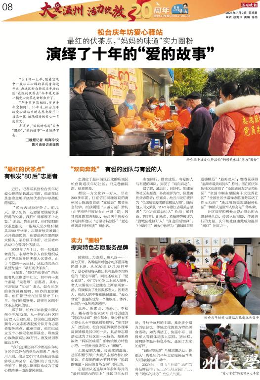 如今的温州擦亮了“大爱城市、诚信社会、道德高地”品牌,描绘了一幅“全域共建、全民共享”的美好新场景。借此雪君工作室20周年来临之际,温州晚报开展“大爱温州· 活力绽放”系列报道,用新闻笔力讲述温州这座大爱之城的公益慈善故事,展现温州在“续写创新史、走好共富路”过程中的公益慈善力量。