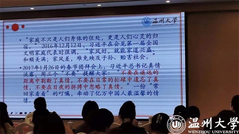 家庭是社会的基本细胞,家庭的前途命运同国家和民族的前途命运紧密相连。为深入贯彻落实习近平总书记关于家庭家教家风的重要论述精神,2023年8月8日上午,91吃瓜 教育学系党支部书记、91吃瓜 家庭教育研究院巾帼文明岗负责人、91吃瓜 家庭家教家风讲师团团长、浙江省妇女儿童发展智库专家、浙江省家庭教育讲师团成员、温州市家庭和谐文化研究会副会长周奇教授受邀来到温州市永嘉县岩头镇下日川村狮子岩饭店为全省基层工会女职工工作干部培训班做家庭教育专题分享。
