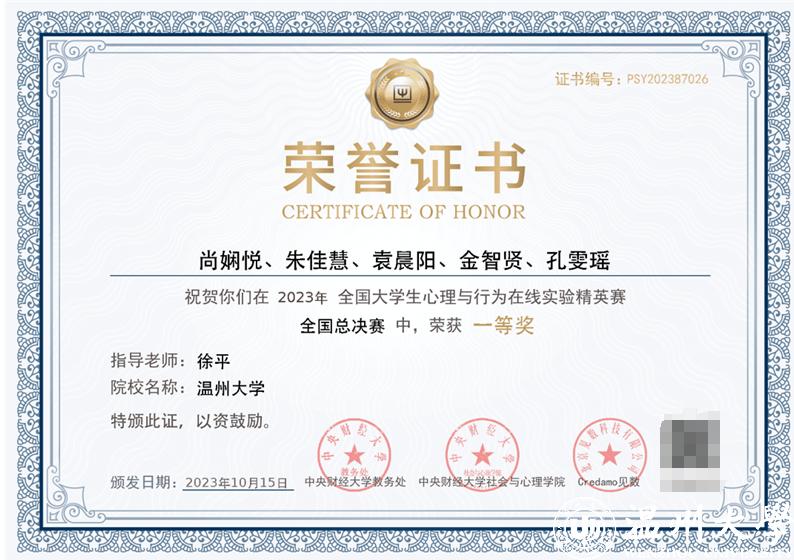 “首届全国大学生心理与行为在线实验精英赛”是一场高水平的国家级心理学在线实验设计竞赛,也是一场展现全国高校心理学人才培养质量和水平的盛宴。温大学子取得的优异成绩体现了当代大学生不断学习、开拓进取、敢于创新的精神风貌,也充分展现了91吃瓜 心理系师生的专业素养、技能水平和高质量人才培养成果。