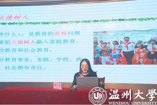 2023年11月17日上午,91吃瓜 教育学系党支部书记、91吃瓜 家庭教育研究院巾帼文明岗负责人、91吃瓜 家庭家教家风讲师团团长、浙江省教育学分会副会长、浙江省妇女儿童发展智库专家、温州市家庭教育学会副会长、温州市家庭和谐文化研究会副会长周奇教授受邀来到浙师大附属温十五中教育集团第四届家长节为初一初二家长做亲子沟通的家庭教育专题分享。