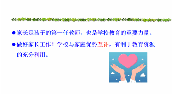 在家校沟通中,教师应与家长建立良好的关系,赢得家长的理解、支持,提高了家校同步教育的有效性,共同增进了学生的成长。周老师就家校沟通存在的问题、家校沟通的意义、家校沟通的原则和家校沟通的策略几方面介绍了加强家校沟通,共同促进每个孩子最大限度的发展。结合案例就家校育人理念的偏差、家校沟通内容和形式的单一、家校权责边界的模糊等问题,重点分析家校沟通的尊重原则、真诚原则、共情原则、互惠原则,了解孩子的特点和家庭的需要,有针对性地开展教育工作。家长与教师的沟通应该以尊重为前提,不分家庭背景平等的对待每一位学生家长,尤其是对一些文化程度不高的家长,还要投入更多的耐心和指导。对孩子共同的爱是家校沟通的基础,家庭与学校之间的关系应当是“伙伴式共同成长”的合作关系,是双方主动参与、共同分担、互动共赢、共同成长。