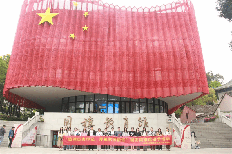 瑞安,这座充满历史韵味的城市,是国旗设计者温大校友曾联松先生的故里。2019年9月28日,全国首个融合国旗科普、红色教育、特色文旅的综合性国旗教育基地——国旗教育馆,在瑞安这片热土上揭幕。馆舍的建筑高度为19.49米,寓意中华人民共和国于1949年成立,而展馆前旗杆的20.19米高,则标志着它2019年的成立年份。占地2600多平方米的国旗教育馆,由地下一层和地上三层组成,其设计理念蕴含了“天圆地方,天瑞地安,鼎盛中华,国旗飘扬”的深刻寓意,并设有四个展厅,成为全国首个以国旗为主题的爱国主义教育综合场馆。