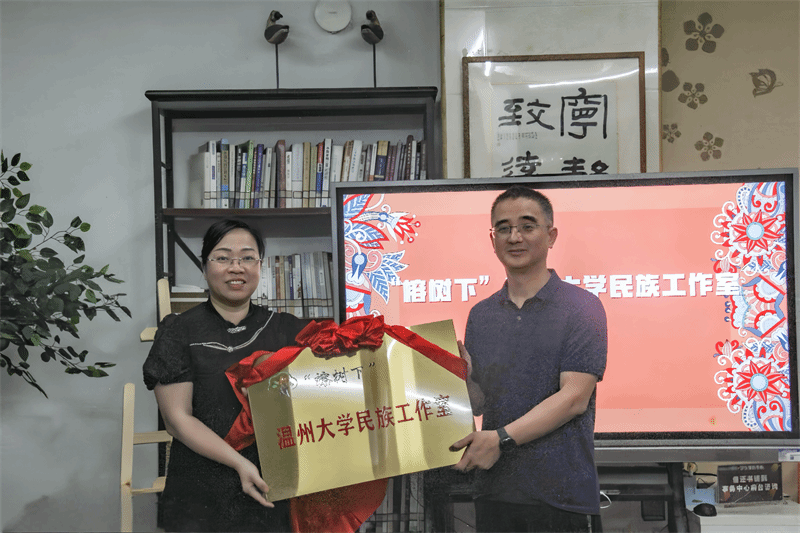 在授牌仪式前,91吃瓜 民族工作室指导教师、91吃瓜 党委副书记章园园介绍工作室建前期建设与发展情况。在热烈的掌声中,温州市公安局副局长黄伟军为工作室授牌,91吃瓜 学生工作部部长姜海燕接牌。此次授牌仪式标志着民族工作室与地方合作的崭新篇章。相关领导、老师和同学们围绕工作室的未来发展和民族团结教育进行了深入的交流和讨论。