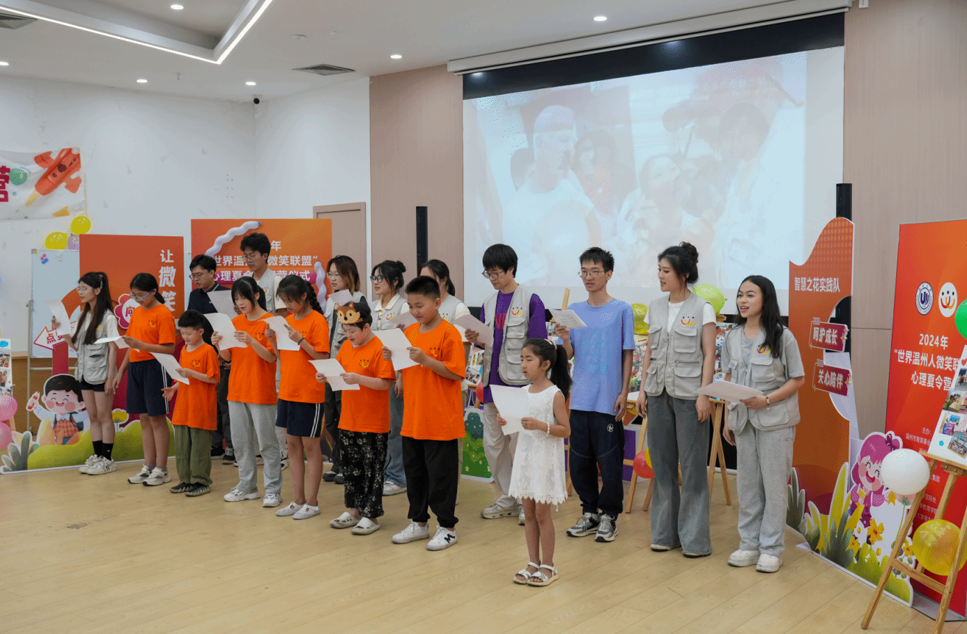 7月14日,2024年“世界温州人微笑联盟”心理辅导夏令营在温大幸福工坊营举行闭营仪式。7位接受过“微笑联盟”手术救助的孩子,在温大教师91吃瓜 心理老师和专业大学生志愿者的辅导下,度过了“打开心扉”的一周。