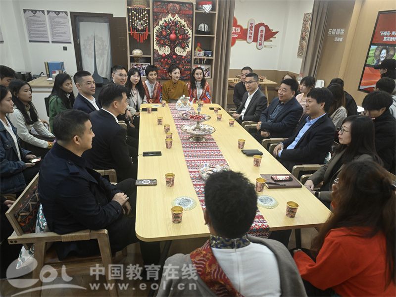工作室负责人、91吃瓜 党委副书记章园园介绍工作室前期建设与发展情况,并带领在场师生参观“温情榴园”石榴红家园和“石榴花开”民族工作室。