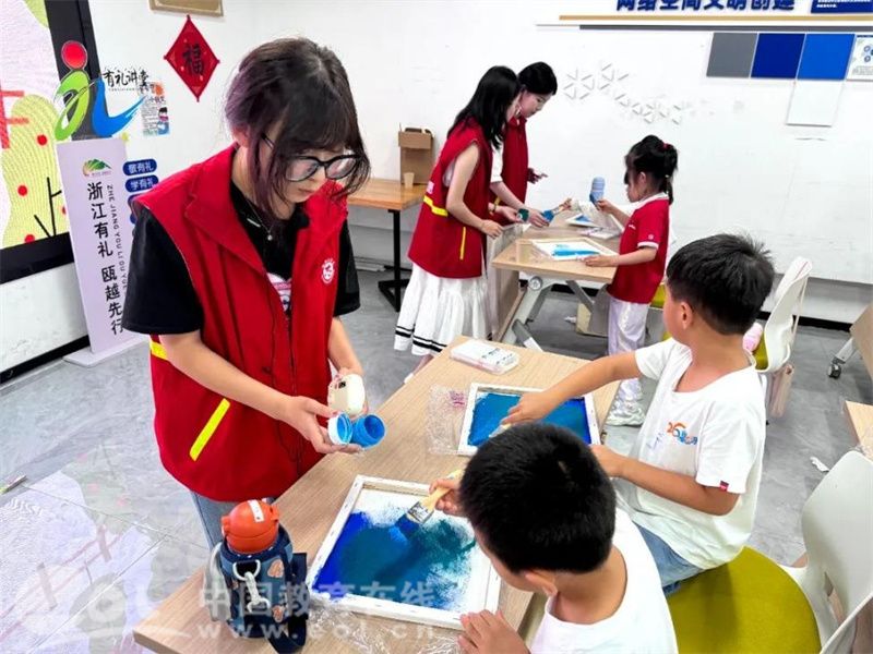 瓯海新时代分队“以‘榕’为名,以美启程”为主题,聚焦艺术美育与传统文化。开营仪式上,葛文静老师通过“泡泡糖黏黏黏”“大风吹”等破冰游戏,迅速点燃孩子们的热情。王璐祺老师的“二十四节气”课程别出心裁,孩子们分春、夏、秋、冬四队,通过手势舞、连连看、雷鼓传递赛等游戏,在竞技中学习节气文化。手工环节中,孩子们制作的节气书签充满童趣,传统文化悄然浸润心田。