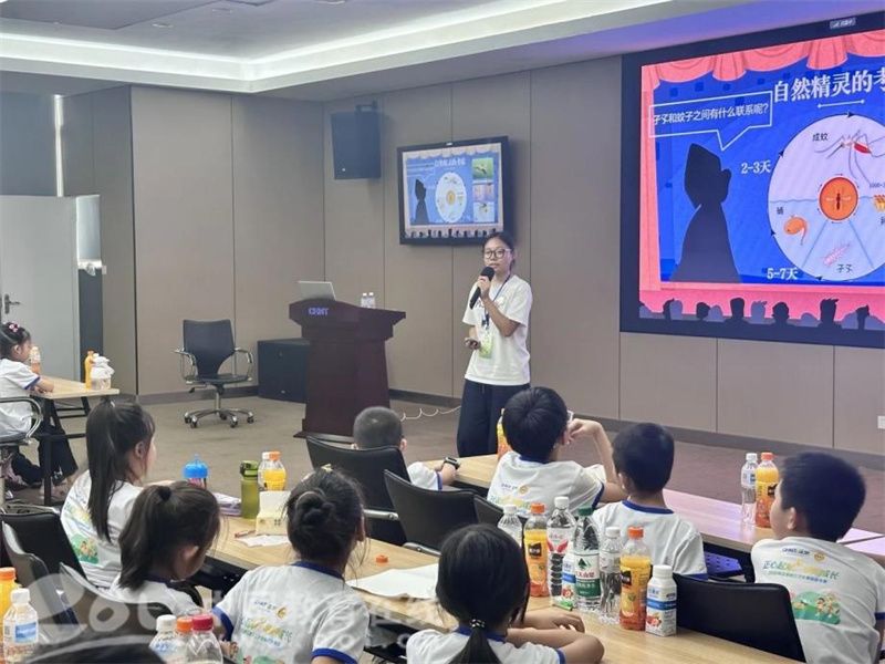 雷老师主讲的《大有“蚊”章》课程中,《绿影国奇遇记》绘本以蚊子幼虫“跟斗虫”的趣味故事引入,孩子们通过观察插画,轻松掌握蚊子“爱积水、昼伏夜出”的习性。在“自然精灵的考验”互动环节,孩子们通过对比库蚊、伊蚊、按蚊的叮咬症状图片,结合生活经验热烈讨论,科学知识在欢声笑语中传递。