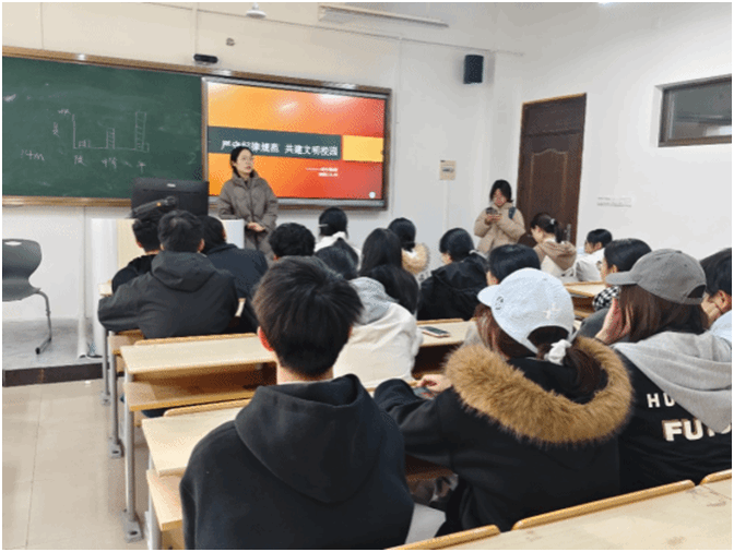 此次学风建设月以温大接受本科教育教学审核评估为契机,成立“学风督导小组”,建立“课堂巡查—行为督查—数据跟踪”闭环管理机制,配合动态学风预警系统,实现从刚性约束到柔性引导的转变。学院各班级与团支部积极响应,召开聚焦“纪律意识、案例警示、文明言行”主题班会,让规则从条文走向内心;案例剖析深化学生对“德之本”的理解,夯实优良学风根基。