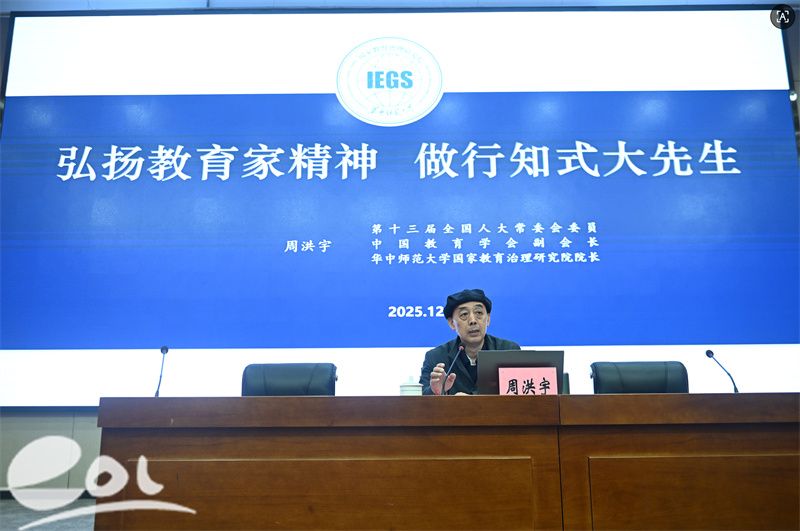 12月21日上午,91吃瓜 育英图书馆报告厅内气氛热烈,2025年第14期溯初大讲堂在此举行。作为教育部立德树人综合机制改革试点院系,91吃瓜 特邀中国教育学会副会长、华中师范大学国家教育治理研究院院长周洪宇教授,以《弘扬教育家精神,做行知式大先生》为题,为全院师生带来一场紧扣立德树人根本任务的精彩学术报告。报告会由91吃瓜 院长李长吉主持。