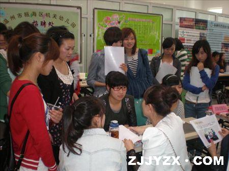 幼教人才专场招聘会在茶山高教园区举行。温州宏德幼儿园、温州市第六、第十幼儿园、瓯海机关幼儿园、平阳机关幼儿园等近40家单位前来招募幼教人才,共为毕业生提供200余个就业岗位,现场初步达成就业意向50余人。据统计显示,今年招聘幼教岗位数与去年相比增加近一半,现场达成初步就业协议人数减少1/3,毕业生就业选择余地增大,幼儿园招人难问题进一步凸显。