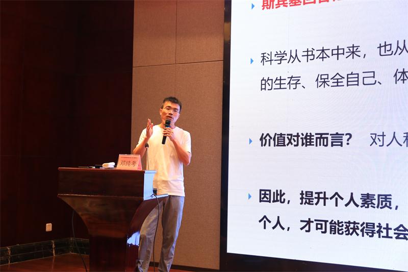 绍兴市上虞区教育体育局党委副书记房永军为本次开学典礼致辞。房永军副书记介绍,上虞是一座历史文化积淀深厚、物产资源丰富的城市,有着制茶、烧瓷、栽培等民间“非遗”工艺以及“北撤遗址”“叶天底故居”等红色革命文化教育元素等得天独厚的研学旅行课程资源,并于2018年被确定为浙江省中小学研学旅行试点县(区)。房永军副书记表示,研学旅行正逐步成为上虞区中小学的重要实践课程之一,研学旅行基地、营地等积极参与评选,中小学生参与热情高涨。但是,随着研学旅行的蓬勃发展,也不可避免地出现了认知误区,因此研学旅行培训活动迫在眉睫,研学旅行从业人员急需专家来释疑解惑,指导拓展。最后,房永军表示,希望各位学员在参与此次培训活动后能更好地了解国内外研学旅行和教育改革的新方向,能更清楚掌握研学旅行的模式和流程,能更好的针对上虞特点开展工作、规避风险,共同促进上虞研学旅行事业发展。