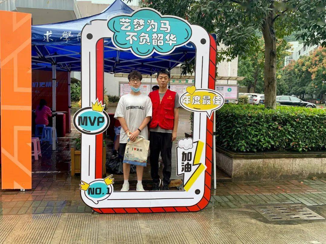 美术与设计学院迎新现场定制特色迎新帐篷,打造靓丽迎新现场。党员们还精心录制了报到攻略,以视频的形式为新生导航。“艺术让生活更美好,美院因你们更精彩。”“艺梦为马,不负韶华!”……迎新帐篷周围随处可见的标语温馨提醒,萌新们你们已是美院“艺”家人!