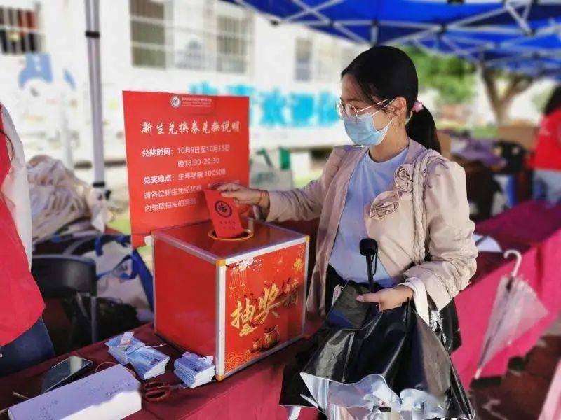 生命与环境科学学院每一位来报到的生环学子,都能领到印有学院logo的“专属红包”,红包中放的是一张张礼物兑换券,学生可对应券上的信息兑换不同的书籍。
